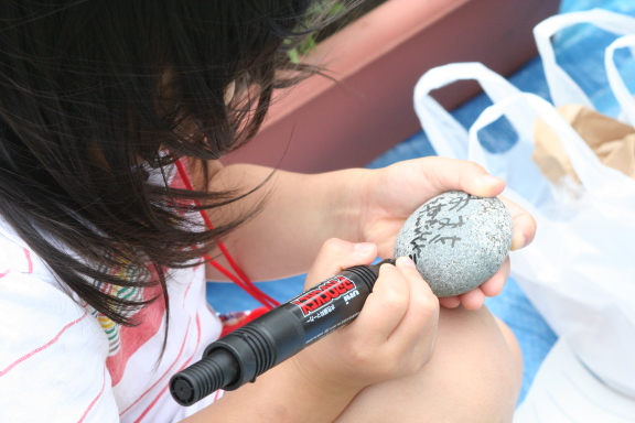 | 8月の朝市は、イベント盛りだくさんでした!夏休みちびっ子特別企画「やませ朝市ギネス認定第2弾!」&「スイカ風船割り大会」&「石に願いを!〜三鉄線路をかざっちゃおう★」。3企画同時開催です。 最初は、おっかなびっくりに、アイマスクをしていた子どもたちも、「右〜」とか「左〜」。「あと半歩♪」なんて掛け声にノリノリでした。見事、スイカを割った後は、来場の皆さんにお振る舞い。とても甘いスイカでしたね。 「石に願いを!」では、三陸鉄道さんのご協力をえて、それぞれの願いが書かれた石を、線路脇の敷石にしたのでした。線路内に入るなんてめったにできない経験に、子どもたちも真剣そのものでした!夏休みのよい思い出が出来たかな。 たくさんのご来場ありがとうございます。来月もたのしい企画を準備しておりますので、ぜひ、皆様お誘いあわせの上、お越しくださいね☆彡 |